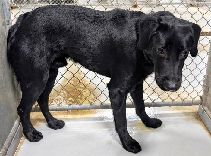 Notes: Noah, Male, Black Lab. Very scared and timid in the shelter environment. He was with kids when brought to the shelter. Good little dog. He is a handsome fella.